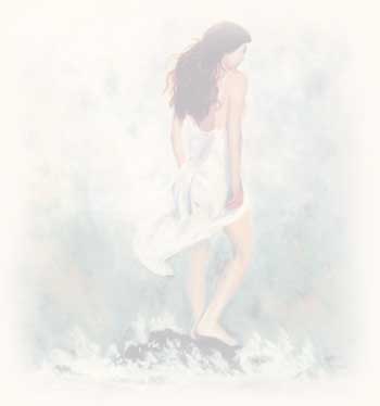 Elle commence la peinture a l'huile, puis explore un style figuratif et spirituel.